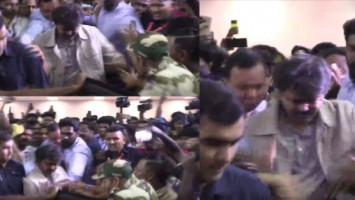 விஜயை காண முண்டியடித்த ரசிகர்கள்: தடுமாறி விழுந்த விஜய்