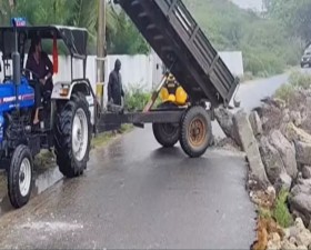 சேதமடைந்த சாலையை சீரமைத்த ராணுவ வீரர்கள்