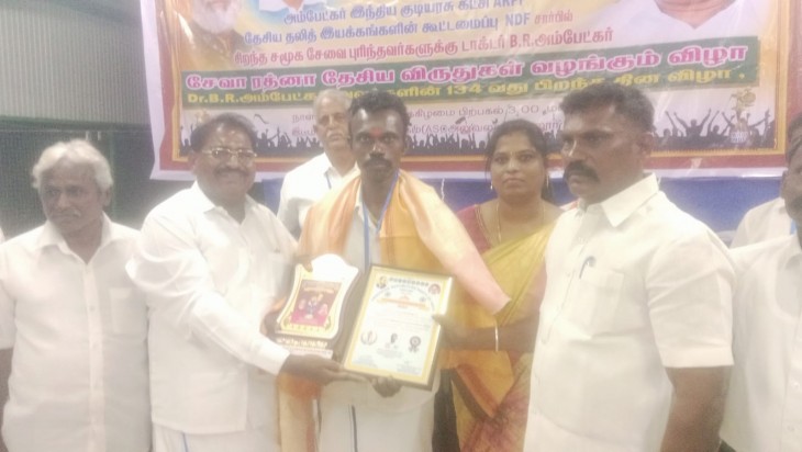 அம்பேத்கர் இந்திய குடியரசு கட்சி ARPI தேசிய தலித் தலித்துக்களின் கூட்ட மைப்பு NDF சார்பில் சேவை ரத்னா விருதுகள் விழாவில் கன்னியாகுமரி மாவட்டம் மாநில துணை பொதுச்செயலாளர் எம்.புரட்சி மணிகண்டன் க்கு மக்கள் சேவையை பாராட்டி விருது வழங்கப்பட்டது , அம்பேத்கர் இந்திய குடியரசு கட்சி தமிழ் மாநில தலைவர் ஸ்ரீரங்கன் பிரகாஷ் விருது சான்றிதழை வழங்கினார் .