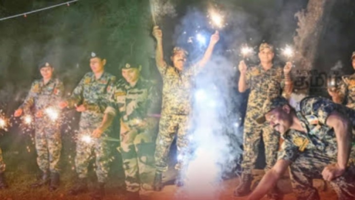தீபாவளி பண்டிகையை ஒட்டி நாடு முழுவதும் இன்று முதலே பட்டாசு வெடித்தல் என கொண்டாட்டம் தொடங்கியுள்ள நிலையில் ஜம்மு காஷ்மீரில் இந்திய ராணுவ வீரர்களும் தங்களது தீபாவளியை கொண்டாடியுள்ளனர்.