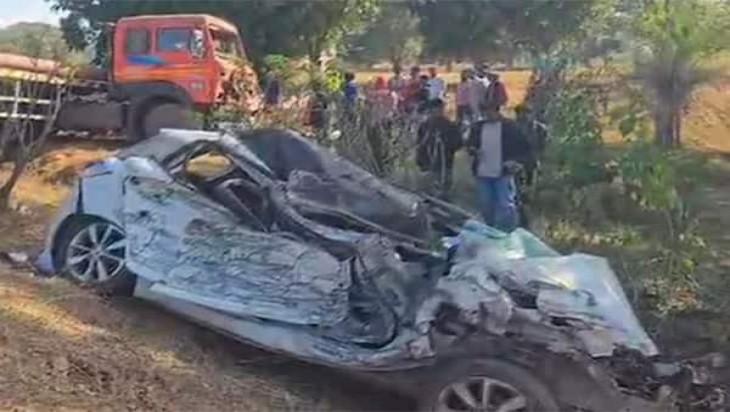 அப்போது பட்ரடோலி கிராமம் அருகே வந்தபோது அந்த வழியே எதிர்த்து செயல் லாரி வந்து கொண்டிருந்தது. இதில் கார் வேகமாக மோதியதில் காரில் இருந்த சிறுவன் உட்பட ஐந்து பேரும் சம்பவ இடத்திலேயே பரிதாபமாக உயிரிழந்தனர்.
