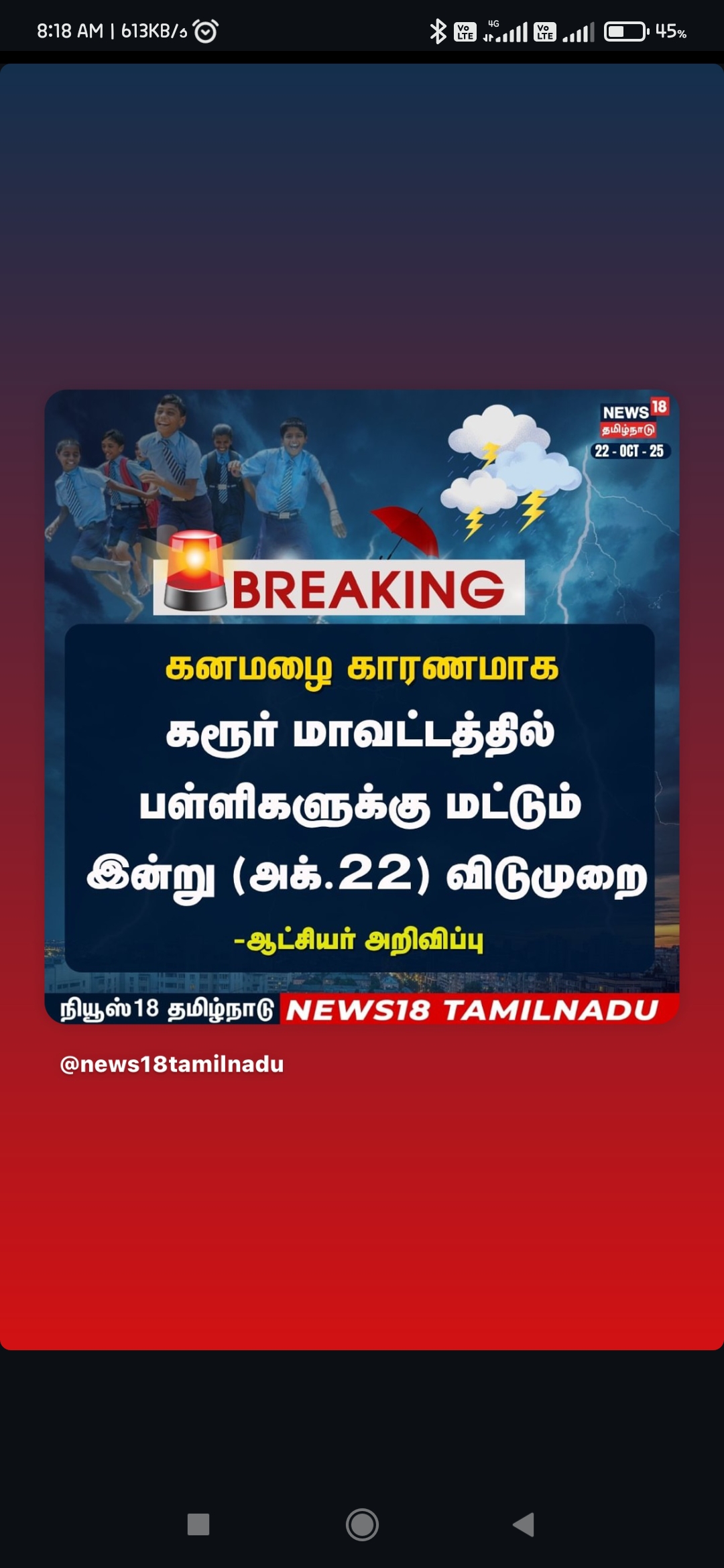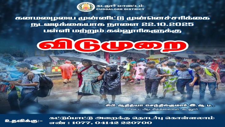 கனமழை காரணமாக மாவட்டத் ஆட்சியர் அறிவிப்பு