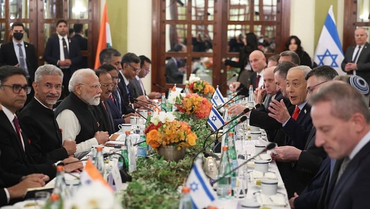 இஸ்ரேலுக்கு அரசுமுறைப் பயணம் மேற்கொண்டுள்ள இந்தியப் பிரதமர் நரேந்திர மோடி மற்றும் இஸ்ரேல் பிரதமர் பெஞ்சமின் நெதன்யாகு ஆகியோருக்கு இடையே நடைபெற்ற உயர்மட்டப் பேச்சுவார்த்தையில், இரு நாடுகளுக்கும் பரஸ்பர பலன் அளிக்கக்கூடிய தடையற்ற வர்த்தக ஒப்பந்தத்தை (Free Trade Agreement) விரைவில் இறுதி செய்யச் சம்மதம் தெரிவிக்கப்பட்டுள்ளது. இந்தப் பயணத்தின் முக்கிய மைல்கல்லாக, இரு நாடுகளுக்கும் இடையிலான உறவு 'சிறப்பு மூலோபாய பங்களிப்பு' (Special Strategic Partnership) என்ற நிலைக்கு உயர்த்தப்பட்டுள்ளதுடன், பாதுகாப்புத் துறையில் தொழில்நுட்பப் பகிர்வு மற்றும் ராணுவ உபகரணங்களின் கூட்டுத் தயாரிப்பு ஆகியவற்றை விரிவுபடுத்தவும் முடிவு செய்யப்பட்டுள்ளது. மேலும், செயற்கை நுண்ணறிவு, குவாண்டம் தொழில்நுட்பம், முக்கிய தாதுக்கள் ஆகிய வளர்ந்து வரும் துறைகளில் ஒத்துழைப்பை மேம்படுத்தவும், 'இந்தியா - மத்திய கிழக்கு ஐரோப்பா பொருளாதார வழித்தடத்தை' (IMEC) அமல்படுத்துவது குறித்தும் இரு தலைவர்களும் விரிவாக ஆலோசித்தனர். காசா அமைதி முயற்சிக்கு ஆதரவு தெரிவித்த பிரதமர் மோடி, மனிதாபிமானம் ஒருபோதும் போரினால் பாதிக்கப்படக்கூடாது என்பதை வலியுறுத்தியதுடன், இந்த உறவு இரு நாட்டு மக்களுக்கும் பெரும் புத்துணர்ச்சியை அளிக்கும் என்றும் தனது சமூக வலைதளப் பக்கத்தில் பதிவிட்டுள்ளார்.