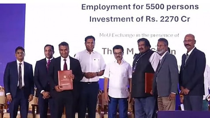 மதுரையில் 'தமிழ்நாடு வளர்கிறது' முதலீட்டாளர்கள் மாநாடு இன்று பிரமாண்டமாக நடைபெற்று வருகிறது. முதலமைச்சர் மு க ஸ்டாலின் தலைமையில் இந்த மாநாடு நடைபெற்று வரும் நிலையில் ரூபாய் 37 ஆயிரம் கோடி முதலீடுகளுடன் 56 ஆயிரத்து 766 பேருக்கு வேலைவாய்ப்பு அளிக்கும் ஒப்பந்தம் ஒப்பந்தங்கள் இன்று கையெழுத்தானது.