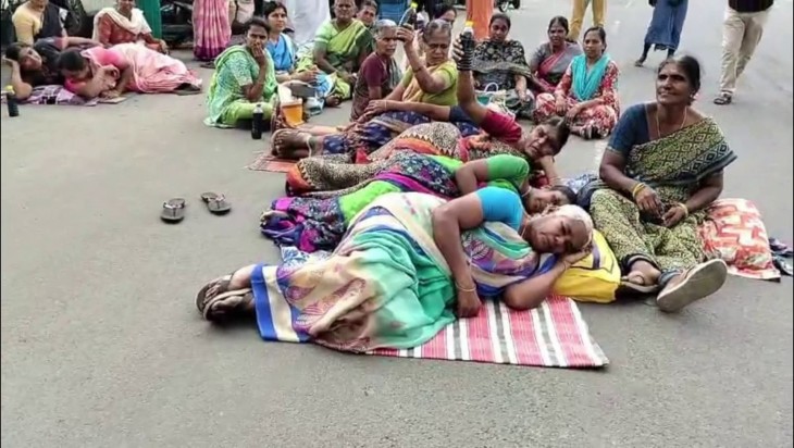 இதனிடையே முதலிபாளையம் சுற்றுச்சூழல் பாதுகாப்பு குழுவினர் 19-11 2025 அன்று மாநகராட்சி நிர்வாகத்தை கண்டித்து பாய் தலையணை பெட்சீட்டுடன் வந்த மாநகராட்சி முன்பு ரோட்டில் படுத்து போராட்டத்தில் ஈடுபட்டனர் அப்போது கேவிஆர் நகர் உதவி போலீஸ் கமிஷனர் ஜான் தலைமையில் தெற்கு போலீஸ் இன்ஸ்பெக்டர் கணேஷ்குமார் மற்றும் போலீசார் விரைந்து வந்து அவர்களை குண்டு கட்டாக தூக்கி வாகனங்களில் ஏற்றி கைது செய்தனர் இதில் 90 பெண்கள் உட்பட 150 பேர் கைது செய்யப் பட்டனர் அவர்களை அருகில் உள்ள தனியார் திருமண மண்டபத்தில் அடைத்து வைத்தனர் போராட்டக் காரர்கள் மண்டபத்திற்குள் செல்லாமல் வாசலிலே மதிய உணவு உண்ணாமல் உண்ணா விரதம் மேற்கொண்டனர் மேலும் பாறைக்குளியில் இனி குப்பைகளை கொட்டு மாட்டோம் என்றும் அதில் தேங்கி நிற்கும் தண்ணீரை அகற்ற வேண்டும் என்றும் அதிகாரிகள் உறுதியளிக் குமாறு தொடர்ந்து கோஷம் எழுப்பினர்