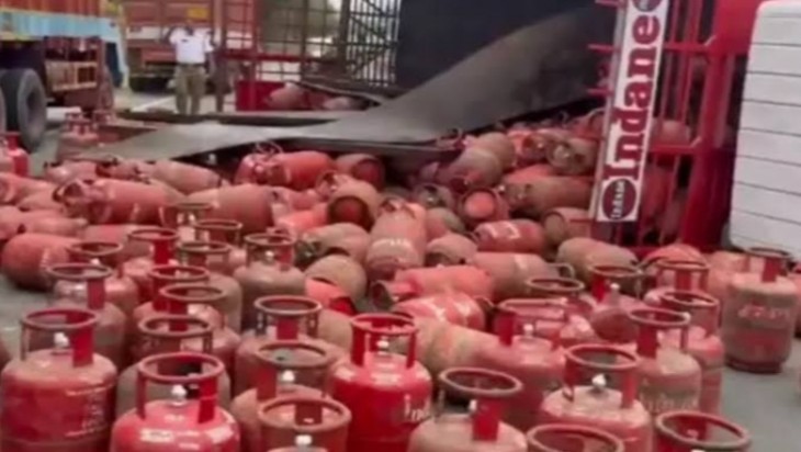 விழுப்புரம் மாவட்டம் செஞ்சியை அடுத்த திருவண்ணாமலை சாலையில் சிலிண்டர்களை ஏற்றிக்கொண்டு லாரி ஒன்று வந்து கொண்டிருந்தபோது எதிரே வந்த கார் மீது எதிர்பாராத விதமாக மோதி விபத்து ஏற்பட்டது. இதில் லாரி கவிழ்ந்து 350 க்கும் மேற்பட்ட சிலிண்டர்கள் சாலையில் விழுந்து சிதறின.