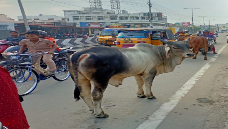 மாடுகள் தினமும் நடு ரோட்டில் போக்குவரத்துக்கு இடையூராக செல்வதும் சில நேரங்களில் ஆக்ரோஷமாக மோதிக்கொள் வதும் வாகனங்களில் செல்பவர்களை பள்ளிக் கூடம் போகும் மாணவ மாணவியர்கள் குழந்தை கள் ஆகியோர்களை அச்சுருத்தும் விதமாகவும் நடக்கின்றன இது சம்பந்தமாக பலரும் மாநகராட்சி நிறுவாகத்திற்கு வீடியோ மூலம் புகார் அளித்துள்ளனர் பலர் சமூக வலைதளங்கள் மூலமும் இதை வெளிப்படுத்தியுள்ளனர் ஆனாலும் இதுவரை சம்பந்தப்பட்டயாரும் நடவடிக்கை மேற்கொள்ள வில்லை மேலும்