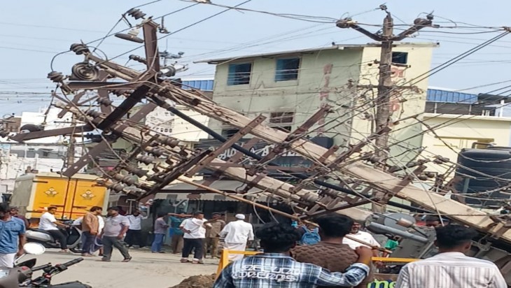 இப்படியான இந்த இடத்தில் நீண்ட காலமாக மிகவும் பலவீனமாக இருந்த மின் மாற்றி மீது டெம்போ வேன் மோதியதில் அந்த மின்மாற்றி அப்படியே சரிந்து விழுந்தது இதனால் அப்பகுதி மக்கள் அலறி அடித்து ஓடினர், அதனால் அசம்பாவிதங்கள் தவிர்க்கப்பட்டது.