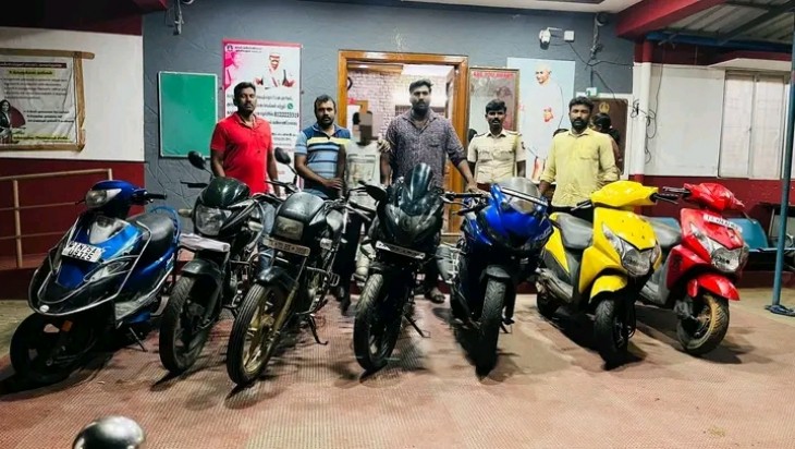 குமரி-தொடர் பைக் திருட்டில் ஈடுபட்ட 4 இளஞ்சிறார்கள் உட்பட 5 பேர் கைது 7 பைக்குகள் பறிமுதல்