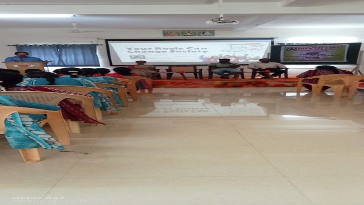 கரூர்:வரும் மார்ச்-8 உலக மகளிர் தினத்தை முன்னிட்டு Nivrithi Education and Social Trust, ஸ்ரீ சாரதா நிகேதன் மகளிர் கல்லூரியில் மாணவர்களுக்கு சமூக விழிப்புணர்வு காணொளிப் போட்டி (social awareness video contest) நடைபெறுகிறது. அதற்காக- "Your Reels can change Society" என்ற தலைப்பில் கடந்த 02 & 03 ஆகிய தேதிகளில். பயிற்சி வகுப்பு திரு.தமிழ்தாசன். Digital Marketer ஆல் நடத்தப்பட்டது. சிறப்பு விருந்தினர்கள் Dr.G. ஸ்ரீனிவாசன், அபி ஸ்கின் ஹேர் கிளினிக், கரூர்,Master.M. மோகன்ராம் சமூக ஆர்வலர்கள் கலந்து கொண்டனர்.