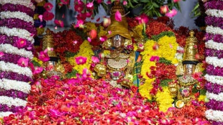 மிகவும் பிரசித்தி பெற்ற திருப்பதி இரண்டு ஏழுமலையான் கோவிலில் நேற்று புஷ்ப யாகம் பிரம்மாண்டமாக நடைபெற்றது. ஆண்டுதோறும் பிரம்மோற்சவ விழாவிற்கு பிறகு இந்த நிகழ்ச்சி நடைபெறும். அந்த வகையில் நேற்று முன்தினம் நடைபெற்ற இந்த புஷ்ப யாகத்தின் முதல் பணியாக நேற்று முன் தினம் மாலை வசந்த மண்டபத்தில் அங்குரார்ப்பணம் நிகழ்ச்சி நடைபெற்றது.