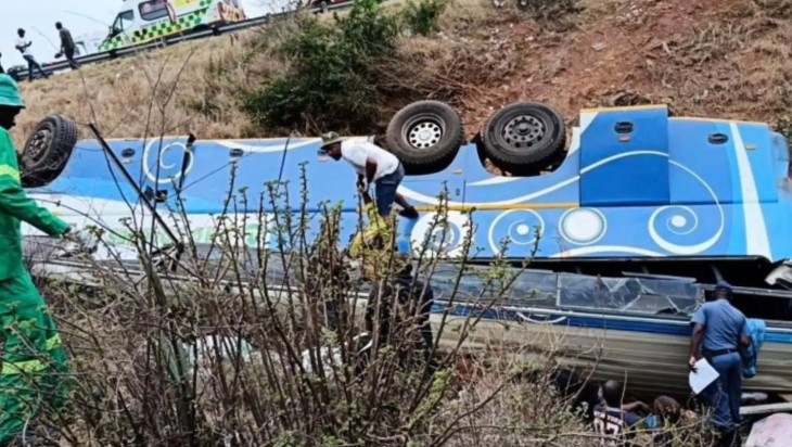 தென்னாப்பிரிக்கா அரேகிப்பா மாகாணம் ஷலா நகரில் இருந்து நேற்று பேருந்து ஒன்று புறப்பட்டது. அந்த பேருந்தில் 50க்கும் மேற்பட்டோர் பயணம் செய்து கொண்டிருந்தனர். இந்த நிலையில் ஷலா நகரில் உள்ள மலைப் பாங்கான பகுதியில் பேருந்து சென்று கொண்டிருந்தபோது எதிரே வந்த கார் மீது பஸ் எதிர்பாராத விதமாக மோதியது. இதில் கட்டுப்பாட்டை இழந்த பேருந்து அருகே இருந்த பள்ளத்தாக்கில் கவிழ்ந்து விபத்துக்குள்ளானது. இந்த விபத்தில் பேருந்தில் பயணித்த 37 பேர் பரிதாபமாக உயிரிழந்தனர். இதனைத் தொடர்ந்து தகவல் அறிந்து சென்ற மீட்பு குழுவினர் காயமடைந்தவர்களை மருத்துவமனைக்கு அனுப்பி வைத்தனர்.
