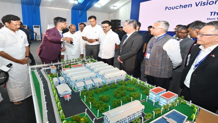 கள்ளக்குறிச்சி மாவட்டம், உளுந்தூர்பேட்டை சிப்காட் தொழிற் பூங்காவில் சுமார் ரூ.2,302 கோடி முதலீட்டில் 20,000 நபர்களுக்கு வேலைவாய்ப்பை அளிக்கும் வகையில் பெள- சென் (Pou Chen) காலணி (தோல் இல்லா காலணி) உற்பத்திக்கான புதிய தொழிற்சாலை செயல்பட உள்ளது. இந்த புதிய காலணி தொழிற்சாலை செயல்படுவதற்கான பணிகள் நடைபெற்று வருவதை தமிழக முதல்வர் மு.க.ஸ்டாலின் பார்வையிட்டு அந்நிறுவன பணியாளர்களுக்கு பணிநியமன ஆணைகளை வழங்கி அவர்களுடன் குழு புகைப்படம் எடுத்துக்கொண்டார். அருகில் பெள சென் நிறுவனத்தின் துணைத் தலைவர் ஜார்ஜ்லீயு,