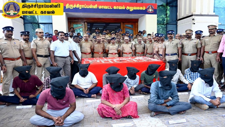 திருச்சி சுப்பிரமணியபுரம் பகுதியில் உள்ள மாவட்ட காவல் கண்காணிப்பாளர் அலுவலகத்தில் நேற்று மாவட்ட காவல் கண்காணிப்பாளர் செல்வ நாகரத்தினம் செய்தியாளர்களுக்கு பேட்டி அளித்தார். அப்போது திருச்சி சமயபுரம் அருகே கடந்த மாதம் 9.9 கிலோ தங்க நகை கொள்ளை அடிக்கப்பட்ட விவகாரத்தில் வட மாநிலங்களைச் சேர்ந்த பெண் உட்பட 12 பேர் கைது செய்யப்பட்டுள்ளதாக தெரிவித்தார்.