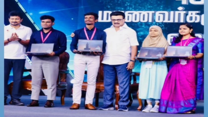 சென்னை நந்தம்பாக்கம் வர்த்தக மையத்தில் நடைபெற்ற விழாவில், கல்லூரி மாணவர்களின் வளர்ச்சிக்காக "உலகம் உங்கள் கையில்" என்னும் பெயரில் மடிக்கணினிகள் வழங்கும் திட்டத்தை தமிழக முதலமைச்சர் மு.க. ஸ்டாலின் தொடங்கி வைத்தார்.