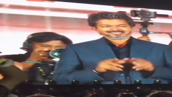 நேற்று விமானத்தில் வருகை தந்தார். இதனைத் தொடர்ந்து விழாவிற்கு வருகை தந்த விஜய் ரசிகர்களை நோக்கி கையேசைத்தார். அப்போது அங்குள்ள ரசிகர்கள் டிவி கே டிவி கே என கரகோஷம் எழுப்பினர். அப்போது ரசிகர்களை பார்த்து இங்கு டிவி கே கோஷம் வேண்டாம் என சைகையில் தெரிவித்தார்.
