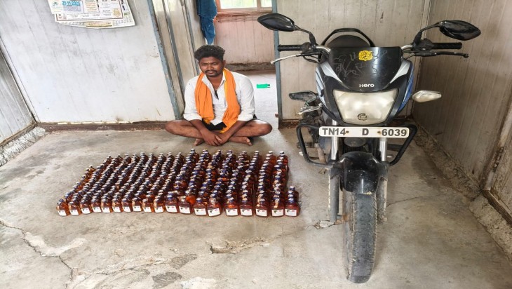 மேலும் எதிரிடமிருந்து 180 ml அளவு கொண்ட 124 மது பாட்டில்களும், 90 ml அளவு கொண்ட 192 பாட்டில்களும் மொத்தம் 316 மதுபான பாட்டில்கள் மற்றும் இரு சக்கர வாகனம் கைப்பற்றப்பட்டு எதிரி நீதிமன்ற காவலுக்கு அனுப்ப நடவடிக்கை மேற்கொண்டு வருகின்றனர்.
