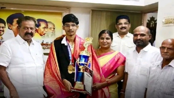 விழுப்புரம் மாவட்டத்தைச் சேர்ந்த பவன் குமார் தனிநபர் பிரிவில் ஜூனியர் தேசிய சாம்பியன்ஷிப் போட்டியில் தங்கப்பதக்கம் வென்று சாதனை படைத்துள்ளார். இந்த நிலையில் ஜூனியர் தேசிய சாம்பியன் போட்டியில் தங்கப்பதக்கம் வென்ற விழுப்புரம் மாவட்டத்தைச் சேர்ந்த பவன் குமார் இன்று திமுக துணை பொது செயலாளரும் முன்னாள் அமைச்சருமான பொன்முடியை அவரது இல்லத்தில் நேரில் சந்தித்து வாழ்த்து பெற்றார்.