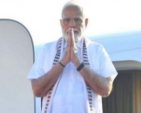 வேட்டி, சட்டையுடன் திருச்சி வந்தார் பிரதமர் மோடி