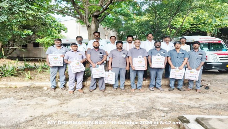 அமரர் ஊர்தி ஓட்டுநர்கள் மற்றும் உடற்கூறாய்வு மைய ஊழியர்களுக்கு புத்தாடைகள் வழங்கிய மை தருமபுரி அமைப்பினர்