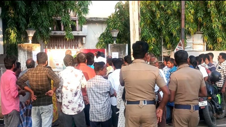 விருதுநகர் மாவட்டம் ராஜபாளையம் மற்றும் சுற்றுவட்டார பள்ளிகளில் படிக்கும் குழந்தைகளுக்கு ஆதார் கார்டு அப்டேட் செய்வதற்காக ராஜபாளையத்தில் உள்ள தனியார் வங்கிகள் தபால் நிலையம் மற்றும் பல்வேறு பகுதிகளில் நூற்றுக்கணக்கானோர் முற்றுகையிட்டு போராட்டம் நடத்தும் அவலம் நீடித்து வருகிறது. 4 ம் தேதிக்குள் அப்டேட் செய்து தர வேண்டும் என ஒரே நேரத்தில் 3000க்கும் மேற்பட்ட குழந்தைகளுக்கு பள்ளியில் இருந்து உத்தரவு பிறப்பித்ததால் அப்டேட் செய்வதற்காக கூட்டம் கூட்டமாக பொதுமக்கள் அலைமோதும் அவலம் தொடர்கிறது. ராஜபாளையத்தில் தலைமை தபால் நிலையம், தமிழ்நாடு மெர்கண்டைல் வங்கி, பாரத ஸ்டேட் வங்கி, நகராட்சி அலுவலகம், இந்தியன் ஓவர்சீஸ் பேங்க், வட்டாட்சியர் அலுவலகம் உள்பட ஏழு மையங்களில் ஆதார் கார்டு அப்டேட் செய்யும் அசதி உள்ளது. இதில் நகராட்சி அலுவலகமும், பாரத ஸ்டேட் வங்கியும் பழுது ஏற்பட்டதால் அப்டேட் செய்ய இயலாத நிலையில் உள்ளது. நிலையில் ஒட்டுமொத்தமாக பொதுமக்கள் ராஜபாளையம் தமிழ்நாடு மெர்கண்டைல் வங்கி, தலைமை தபால் அலுவலகம், வட்டாட்சியர் அலுவலகம் போன்றவைகளை முற்றுகையிட்டு போராட்டம் நடத்தும் அவலம் தொடர்ந்து வருகிறது. நாள் ஒன்றுக்கு 30 பேருக்கு மட்டுமே ஆதார் கார்டு அப்டேட் செய்ய இயலும் என விதிமுறை உள்ளதால், முதலில் வரும் 30 பேர் யார் என்பதில் தான் பொதுமக்களிடையே போட்டி ஏற்பட்டுள்ளது. ராஜபாளையம் தலைமை தபால் நிலையத்தில் அதிகாலை 3:30 மணி முதல் அப்டேட் செய்வதற்காக 50க்கும் மேற்பட்டோர் திரண்டனர். நேரமாக ஆக 200 க்கும் மேற்பட்டவர் திரண்டனர். இந்நிலையில் தபால் அலுவலகம் ஏழு மணிக்கு சிறந்த உடன் அத்தனை பேரும் ஒட்டுமொத்தமாக உள்ளே சென்றபோது, 5 பேருக்கு மட்டுமே டோக்கன் கொடுத்துவிட்டு முடிந்து விட்டதாக கூறிவிட்டனர். இதை கண்டித்து டோக்கன் பெற்ற நபர்கள் தவிர அனைவருமே டிபி மில்ஸ் சாலையில் சாலை மறியல் போராட்டம் நடத்தினார்கள். எந்த ஒரு வாகனத்தையும் கடந்து செல்ல அனுமதிக்கவில்லை. இந்நிலையில் தகவல் கிடைத்தவுடன் ராஜபாளையம் தெற்கு காவல் நிலையத்தினர் விரைந்து வந்து போராட்டம் நடத்தியவர்களிடமும் தபால் நிலையத் தினரிடமும் பேச்சுவார்த்தை நடத்தினார்கள். பின்னர் மறுபடியும் 30 பேர் வரிசையாக வரும்படி கூறவே அனைவரும் ஒட்டுமொத்தமாக முண்டியடித்துச் சென்றனர்.