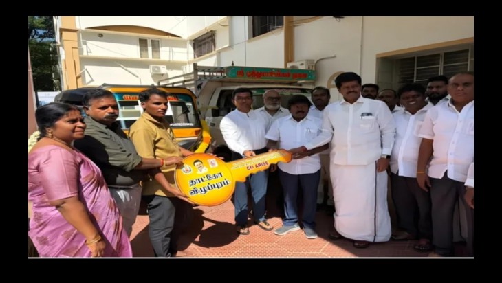 விழுப்புரம் மாவட்ட ஆட்சியர் அலுவலக வளாகத்தில், தாட்கோ துறையின் சார்பில் ஆதிதிராவிடர் பழங்குடியினர் சமூக பொருளாதார மேம்பாட்டு திட்டத்தின் கீழ் பயனாளிகளுக்கு சுமை ஏற்றும் வாகனம் வழங்கப்பட்டது. மாவட்ட ஆட்சித் தலைவர் ஷேக் அப்துல் ரகுமான் தலைமையில், லட்சுமணன் எம்.எல்.ஏ. இந்த வாகனத்தை பயனாளிகளுக்கு வழங்கினார். இந்த நிகழ்வு அக்டோபர் 30 அன்று நடைபெற்றது. இத்திட்டத்தின் மூலம் பயனாளிகளின் வாழ்வாதாரம் மேம்படும் என எதிர்பார்க்கப்படுகிறது.